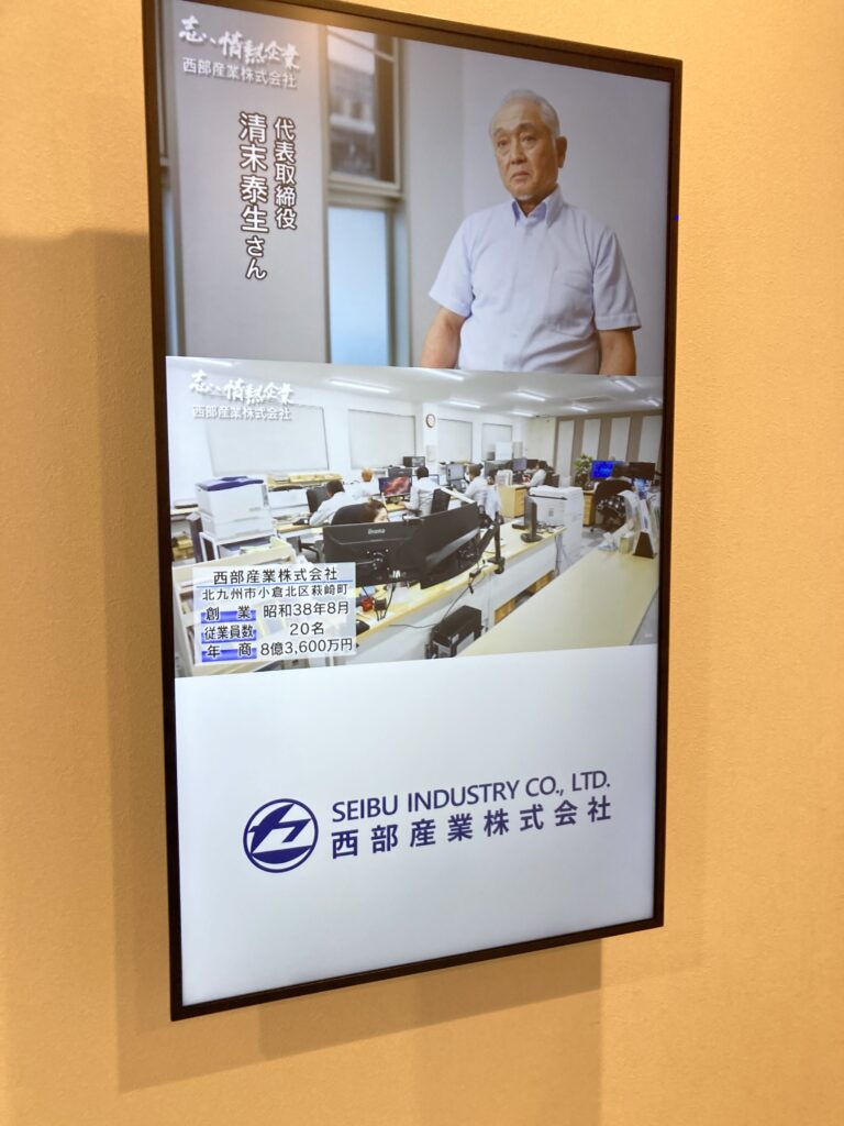 玄関にサイネージモニターを設置しました 2026-03-26 最終更新日時 : 2026-03-26 seibusangyo 当社の玄関にサイネージモニターを設置いたしました。こちらのモニターでは直近の施工事例の動画やRKB毎日放送の「志、情熱企業」にて西部産業が放映された際の映像を公開しております。お立ち寄りの際は是非ご覧ください。